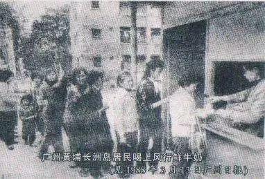 1980年代,由于引入了優質的荷斯坦奶牛和自己的牧場,流行的牛奶使廣州人有可能飲用新鮮的牛奶。